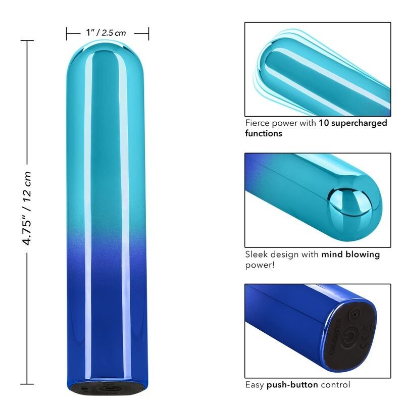 Agregue un toque de glamour a su caja de juguetes con el atrevido acabado ombré metálico. Un botón de control de un solo toque te permite alternar entre 10 funciones de vibraciones de alta intensidad, mientras que el motor silencioso mantiene tu tiempo de juego en secreto.