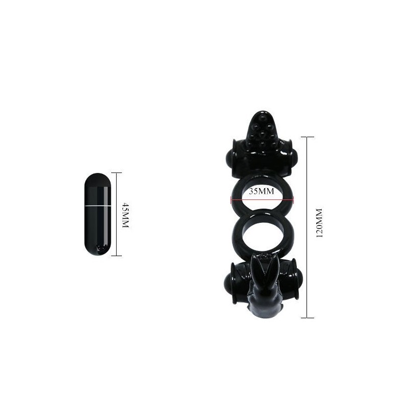 Este anillo vibrador se adapta perfectamente a tu cuerpo. Está hecho de silicona de alta calidad e incluye el conejo para la estimulación de clítoris. La bala vibradora es potente y fácil de manejar (modo On/Off). Ideal para las parejas para disfrutar juntos en el mismo momento.