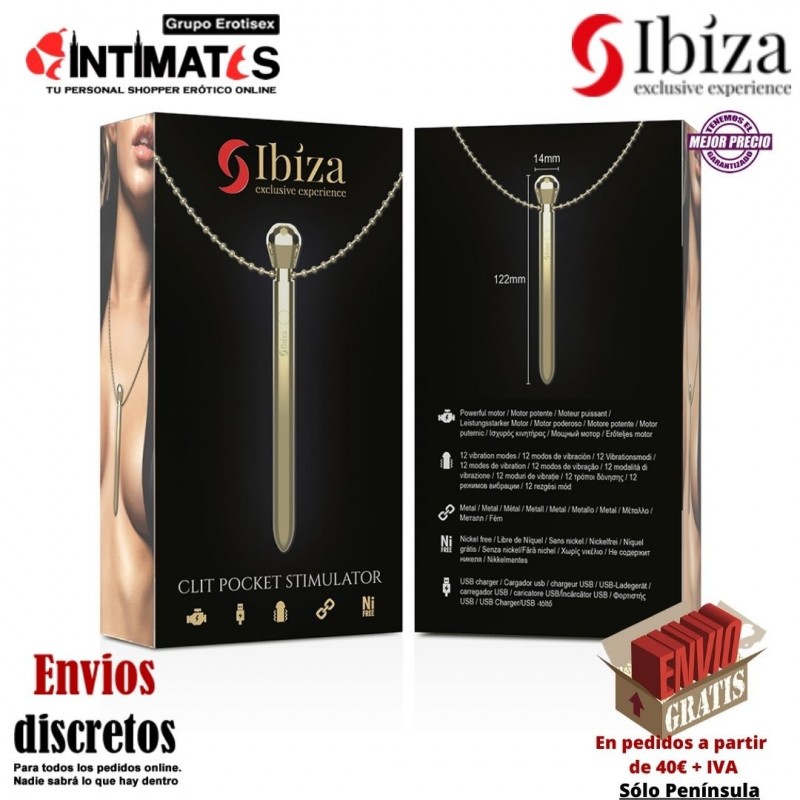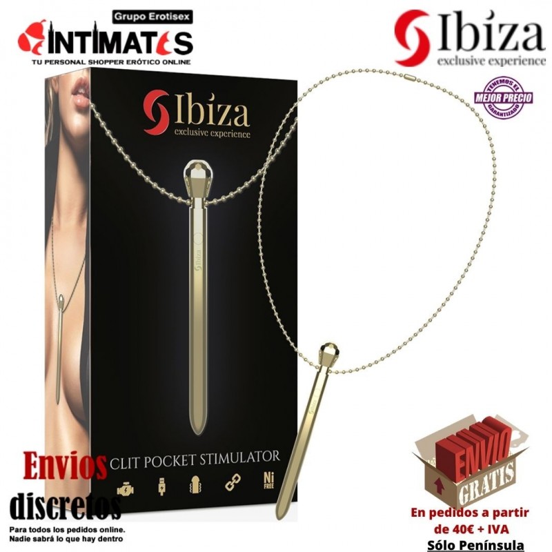 Diamond es un estimulador de clítoris de bolsillo con collar recargable de la marca Ibiza, una joya de placer en color dorado.