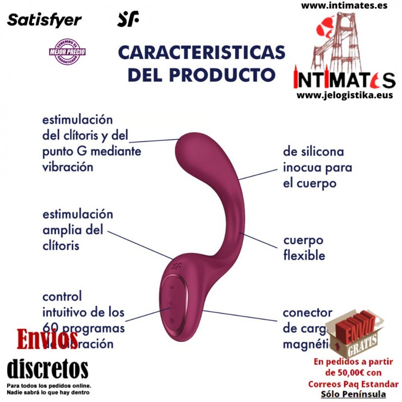 Dos potentes motores y 60 programas de vibración (con 12 ritmos y 5 niveles de intensidad cada uno) ofrecen una amplia gama de opciones que puedes controlar intuitivamente para adaptarlas a tus preferencias.