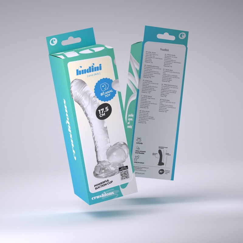 Hudini es un consolador de gelatina, flexible pero firme y ultra transparente. Su glande realista y su estructura venosa están deseando desaparecer en tu interior.
