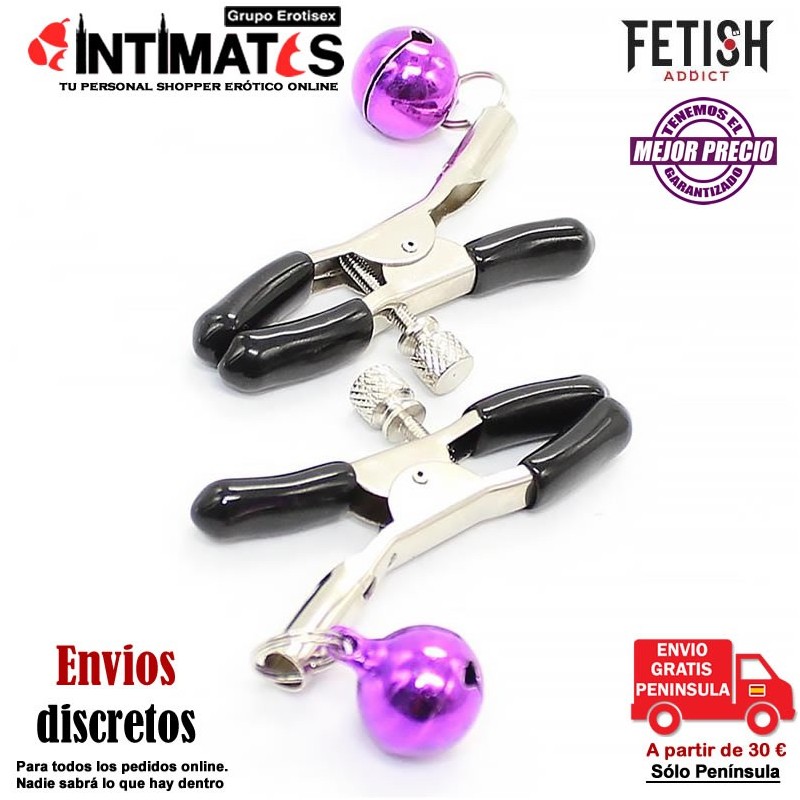 Single Bell · Pinzas para pezones con cascabel púrpura · Fetish Addict