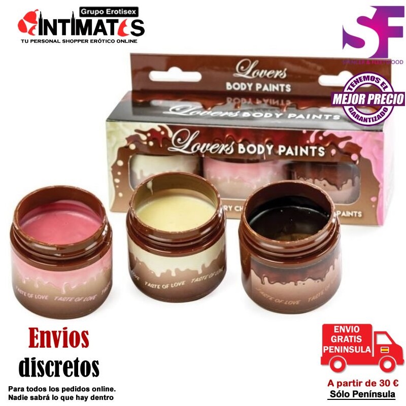 Las pinturas corporales Lovers body paints y sus deliciosos sabores a chocolate con fresas, chocolate blanco y chocolate con leche serán el complemento perfecto para unos divertidos preliminares.
