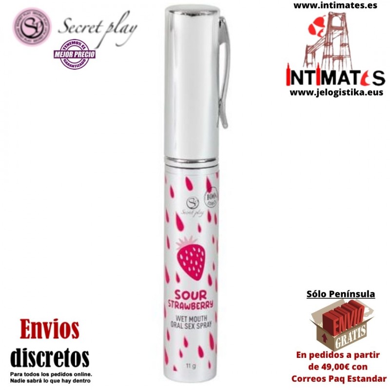 Spray para boca y garganta con sabor a fresa ácida que hace que tu boca esté más húmeda eliminando la sequedad bucal y convirtiendo el sexo oral en una experiencia muy placentera además de proporcionar buen aliento.