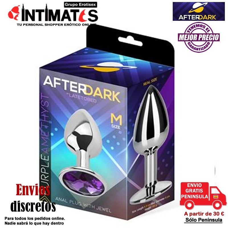 Purple · Plug anal de aluminio con joya en su base - M · AfterDark