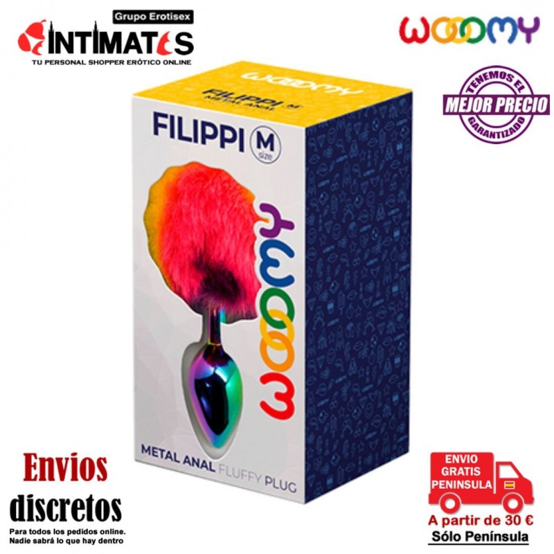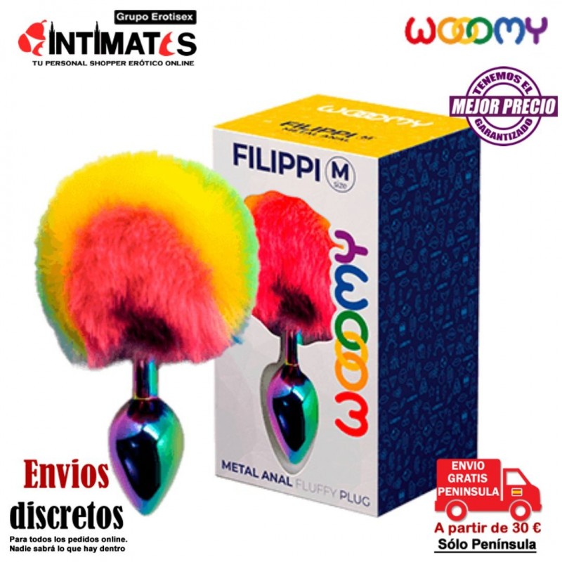 ¡Con el plug anal / capullo de rosa Filippi Fluffy Raimbow talla M de la marca Wooomy, combinarás placer para los sentidos y placer para los ojos!