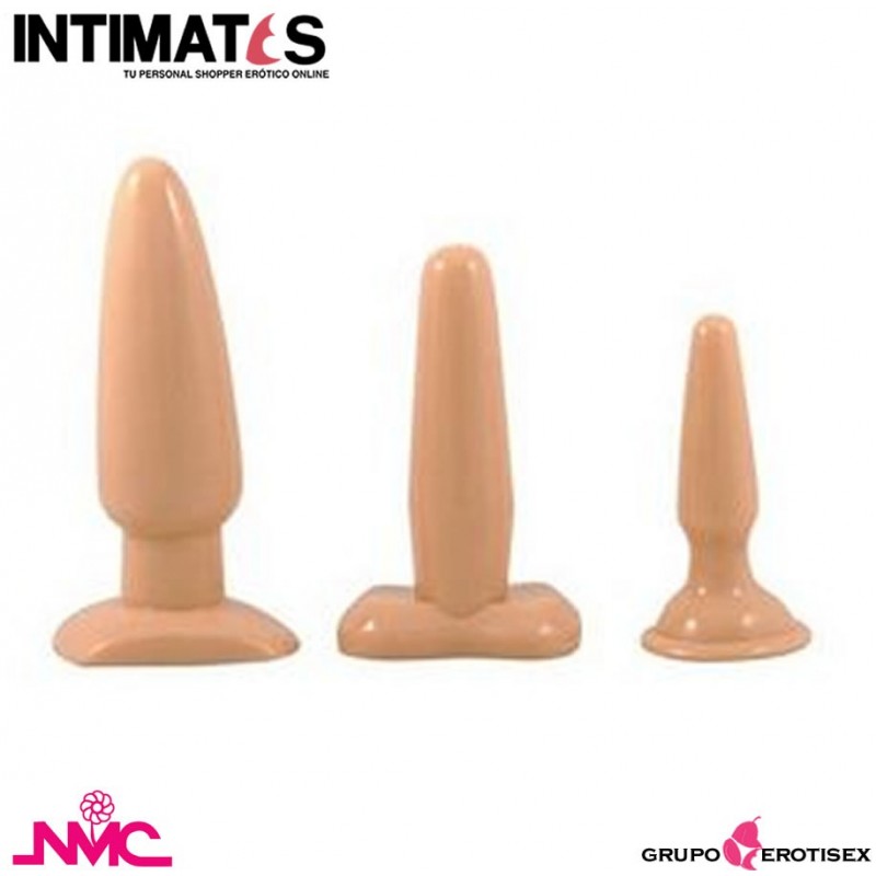 Incluye tres plugs anales de distintos tamaños y del color de la piel.