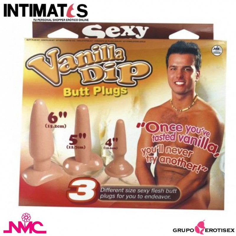 Vanilla Dip es un set de tres plugs anales que pertenece a un conjunto de plugs de gelatina totalmente flexibles que proporcionan un placer intenso.
