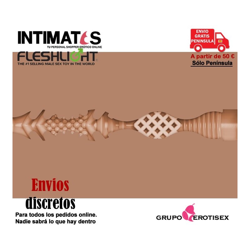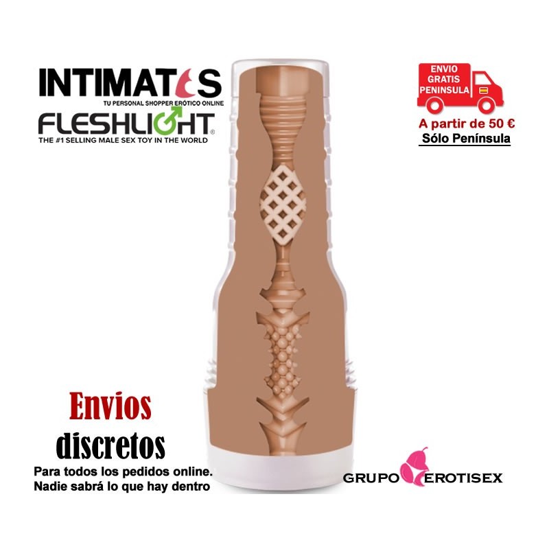 Por fuera, este masturbador masculino, tiene el diseño exclusivo que solo Fleshlight tiene y que lo convierte en la marca de masturbadores masculinos n 1 del mundo por su diseño