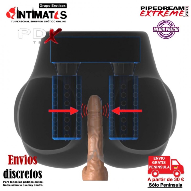 Está provisto de dos orificios de penetración (vagina y ano) dispuestos en posición de perrito para facilitarte el juego.