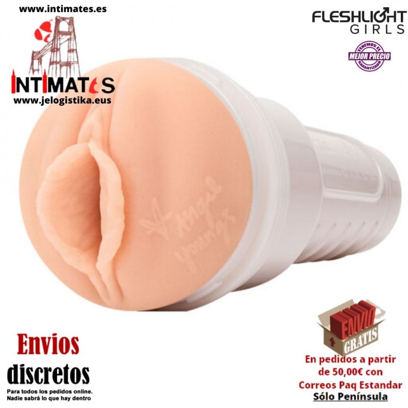 Siente cada detalle de estar dentro de Angel Youngs Fleshlight, con su diseño realista.