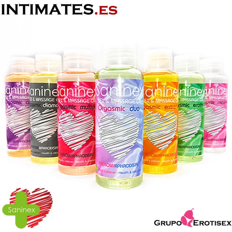 Saninex Orgasmic multiple te proporciona el poder orgásmico afrodisíaco, junto con el espectacular efecto extra lubricante y deslizante de los aceites corporales Saninex.