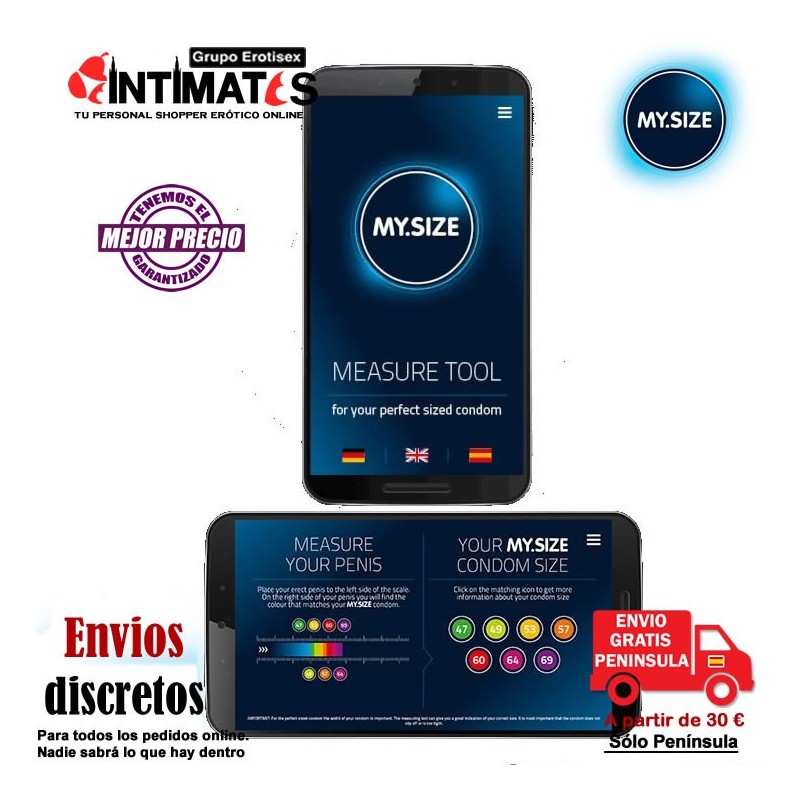 MY.SIZE PRO es la marca de preservativos, que se encuentra disponible en 9 tallas diferentes desde un ancho de 45mm hasta 72mm.