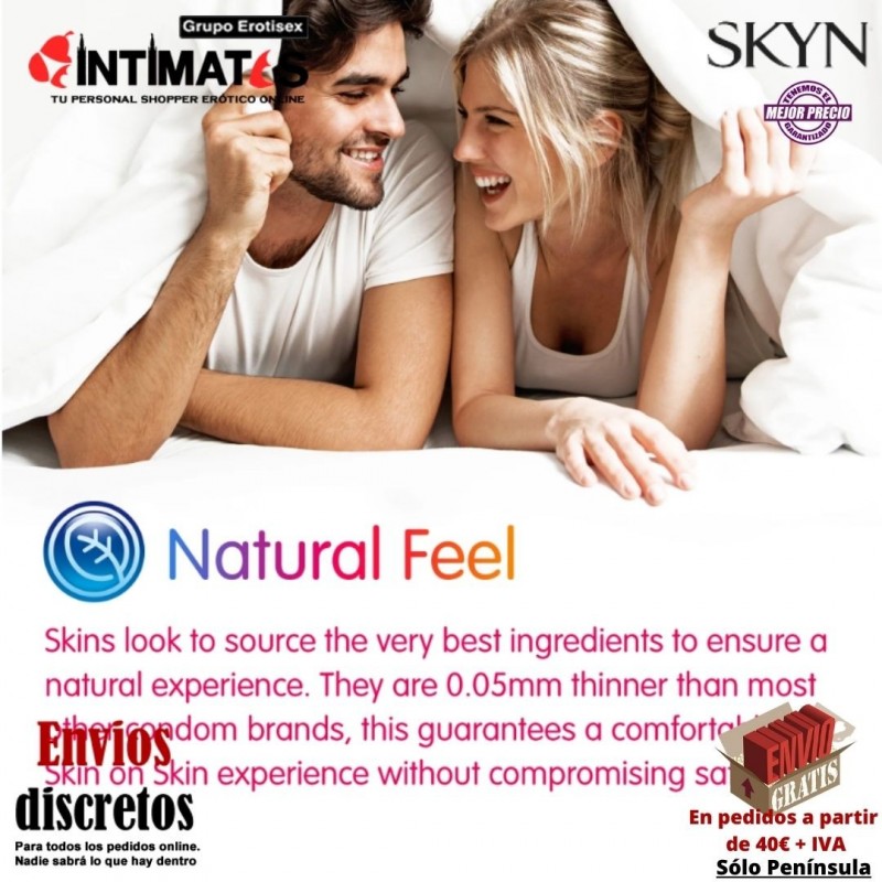 Condones individuales en 3 emocionantes variedades, cada paquete contiene una combinación de condones naturales, con puntos y estrías y ultra delgados, lo que te permite disfrutar de diferentes aventuras de placer con este paquete variado de los favoritos de Skins.