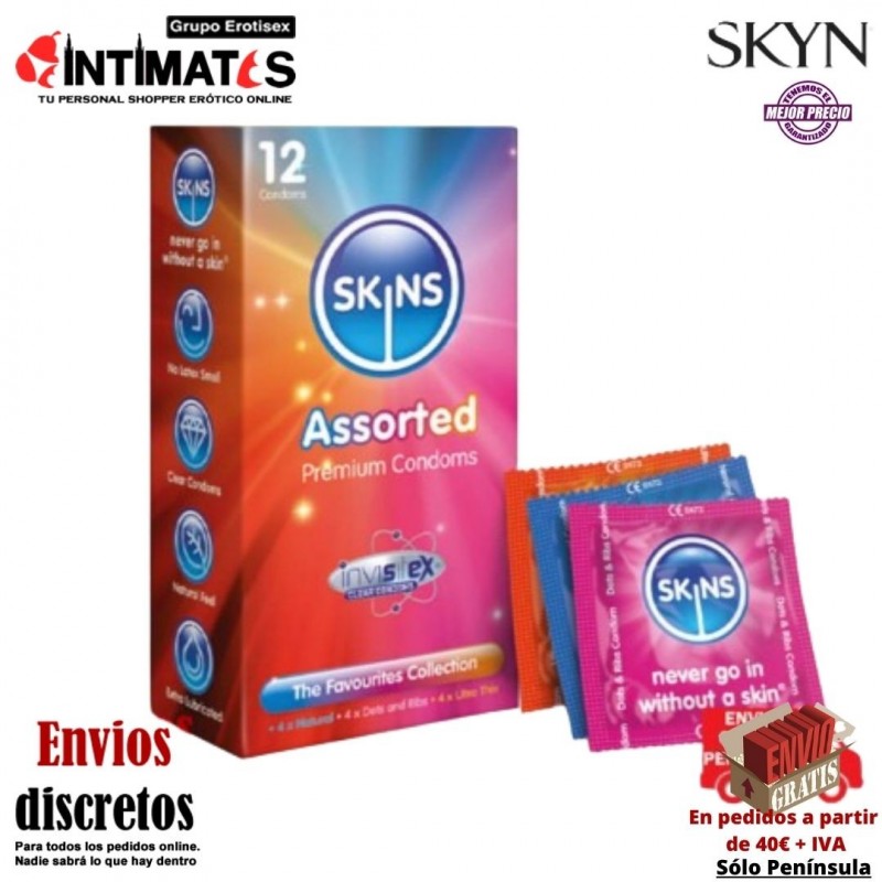Assorted 12 Condoms · Mix de preservativos · Skins
