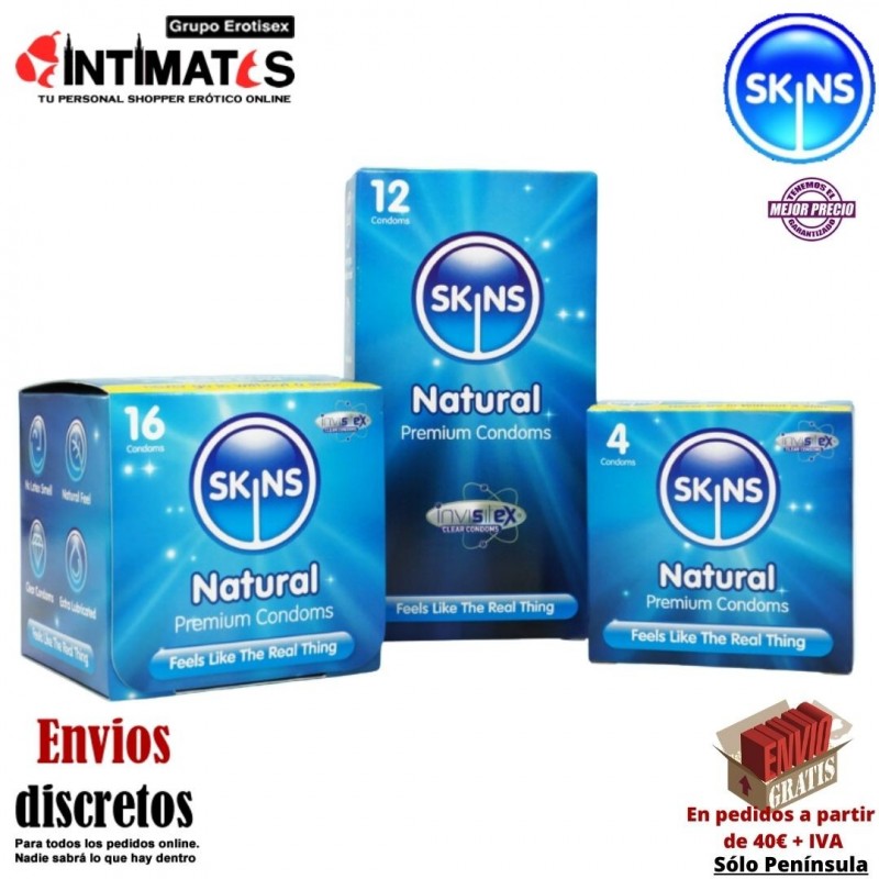 Natural 12 Condoms · Preservativos simples y transparentes · Skins