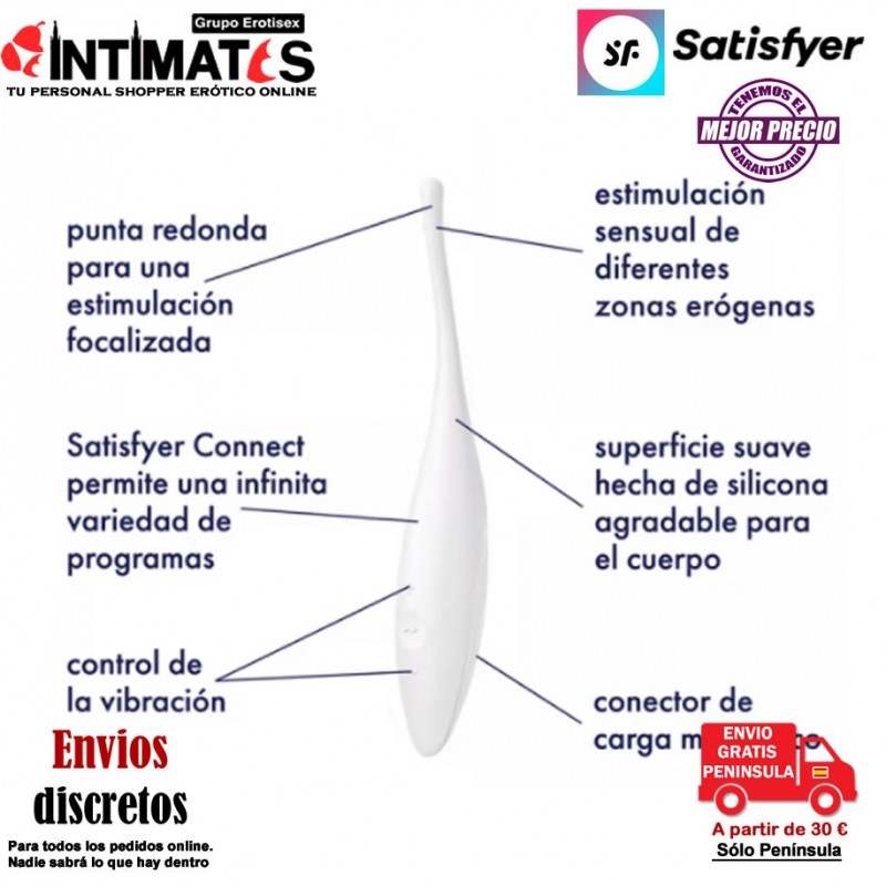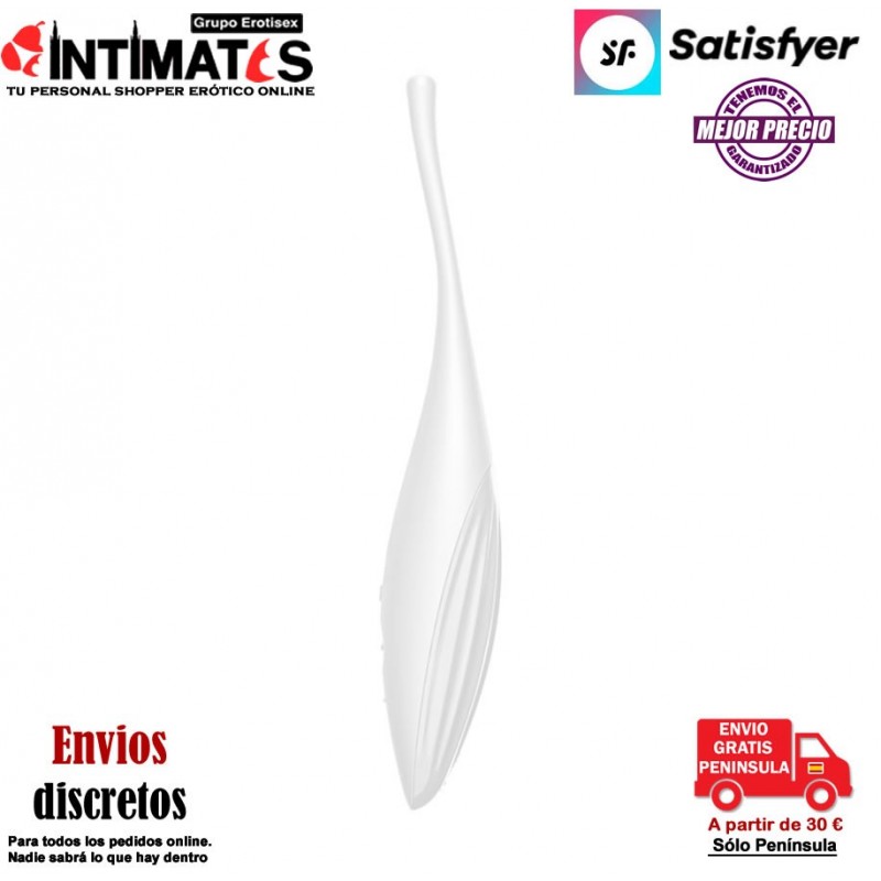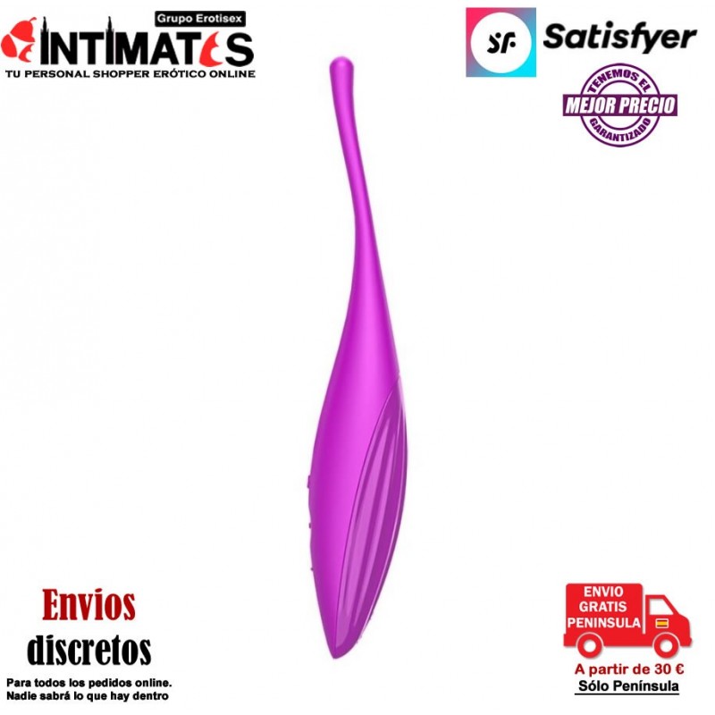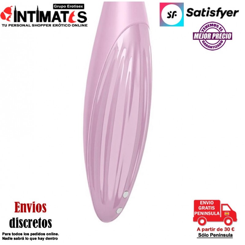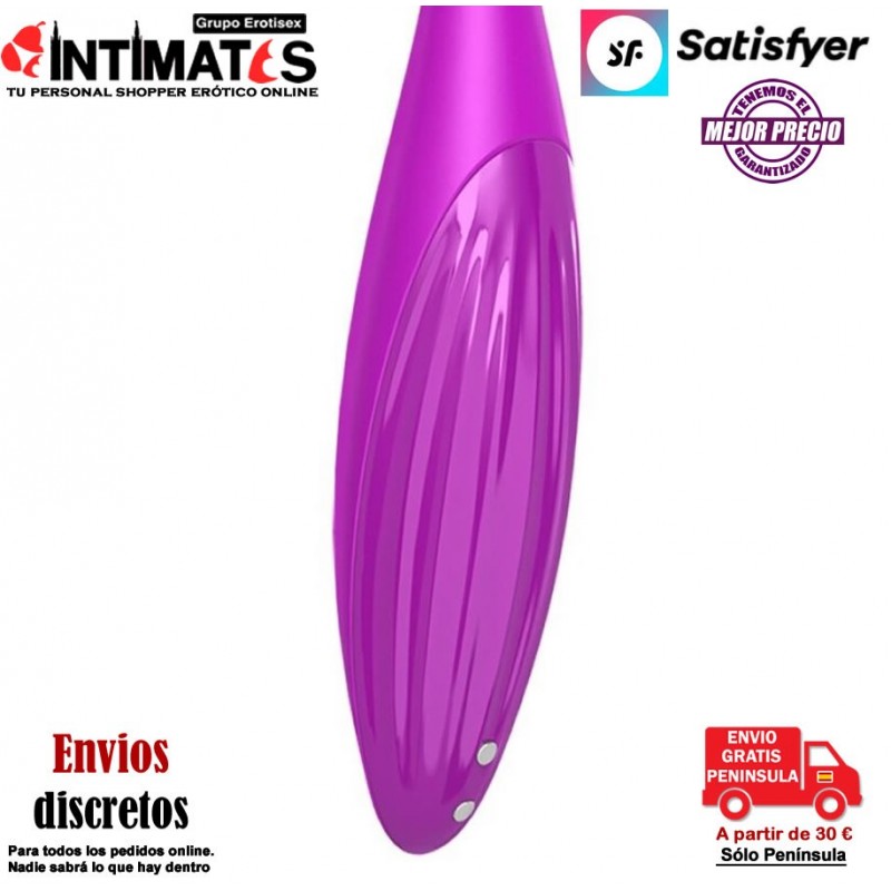 Con vibraciones circulantes, Satisfyer Twirling Joy de silicona estimula todas las zonas erógenas, como el clítoris, los labios o los pezones.