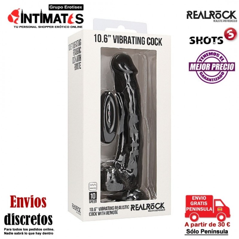 Pene realístico con vibración y escroto 270mm - Negro · RealRock