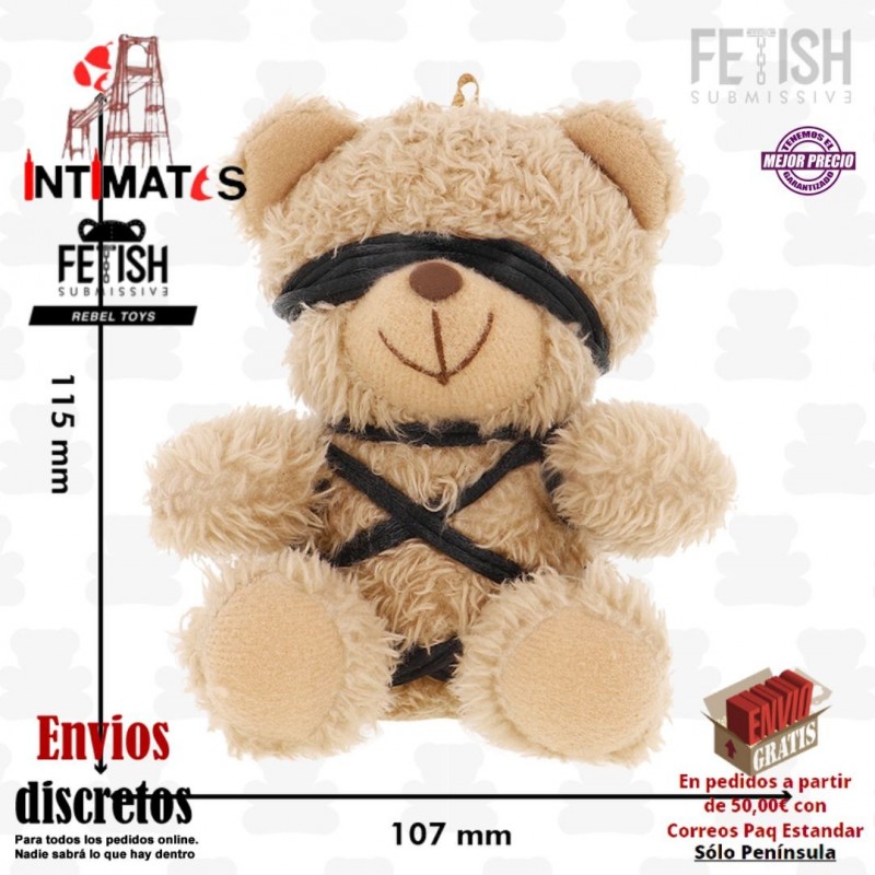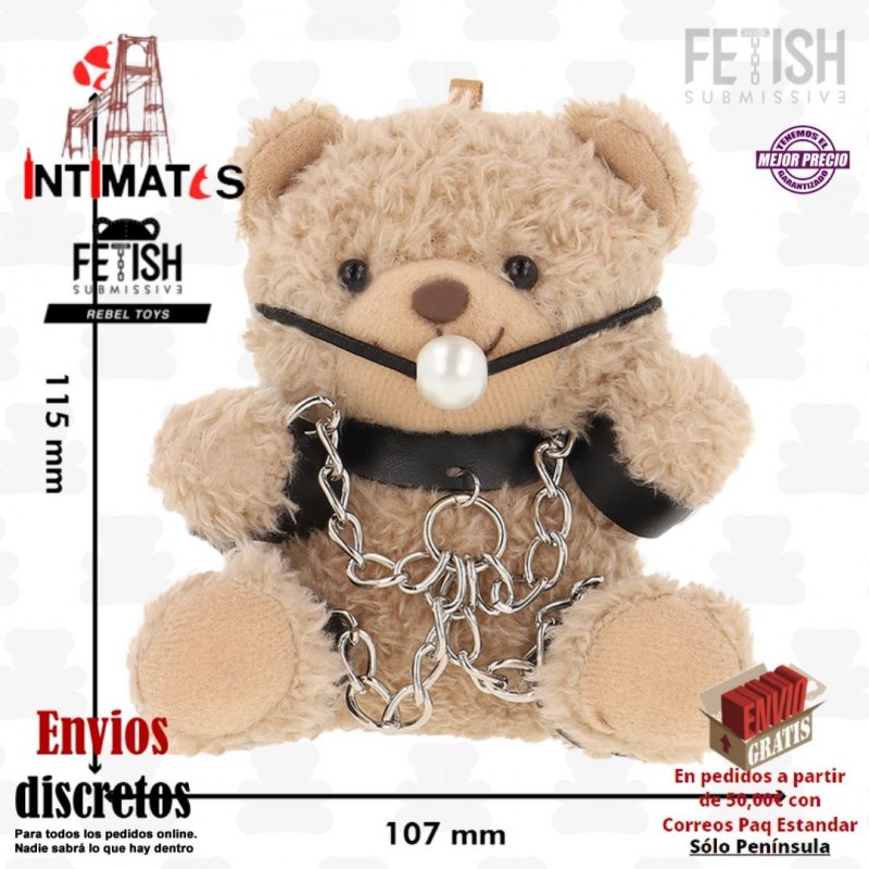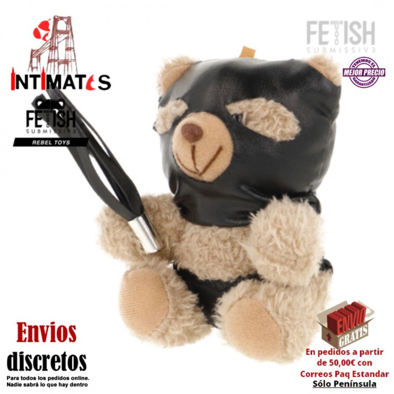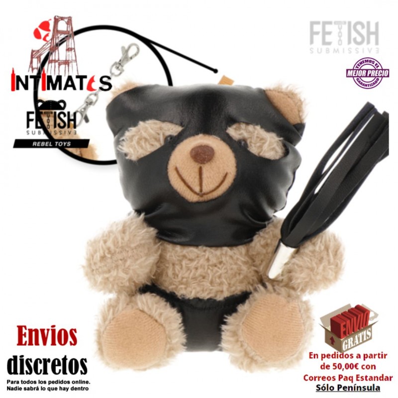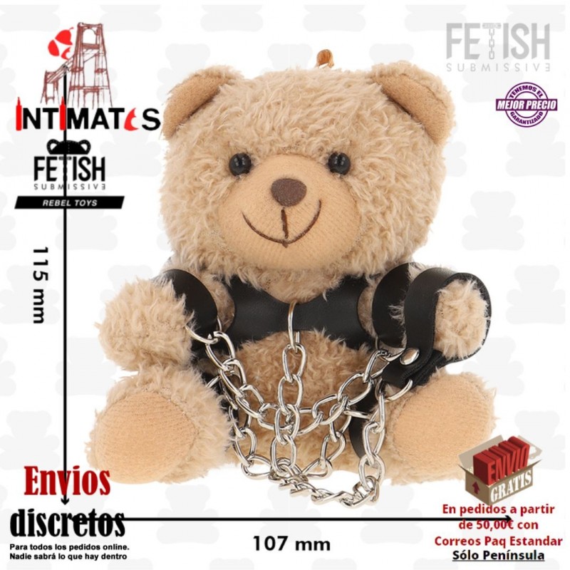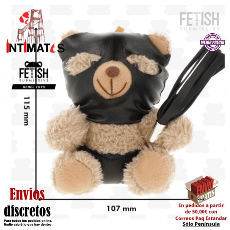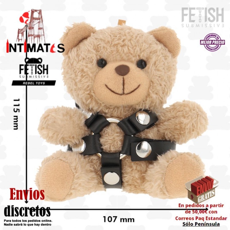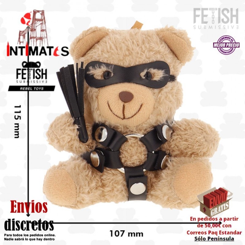 Un osito de peluche con un estilo atrevido y original, que incorpora un colgador para que puedas llevarlo contigo en tu bolso, mochila o accesorio favorito.