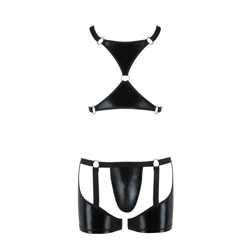 El conjunto Aron es un conjunto de lencería erótica de aspecto húmedo para hombre.