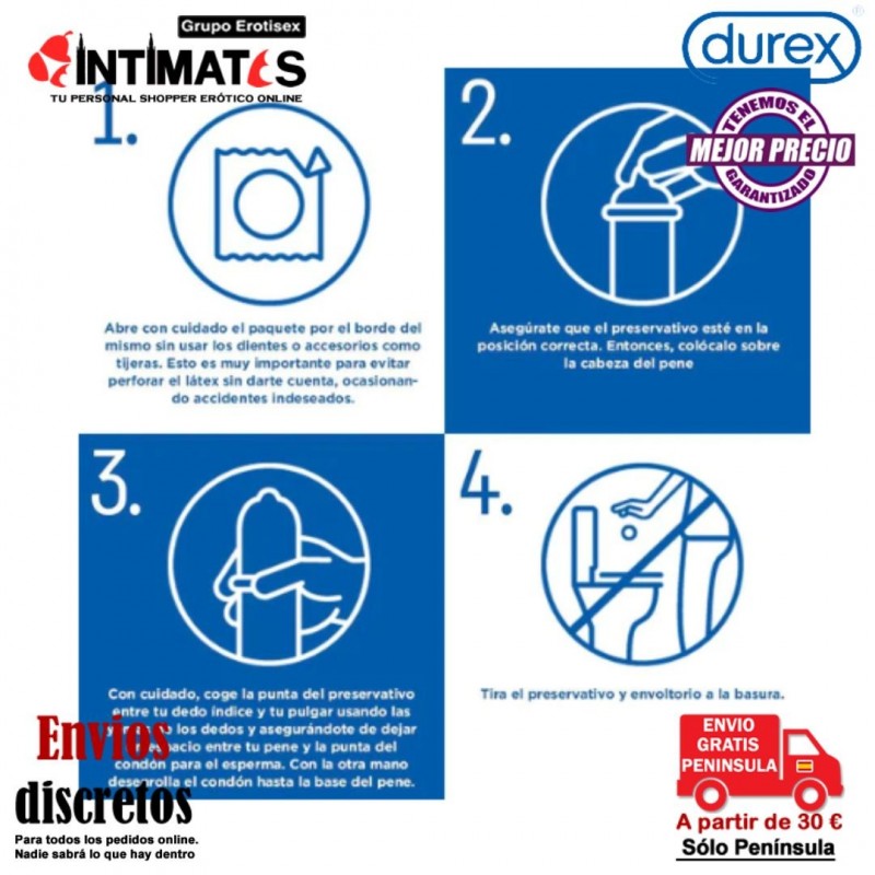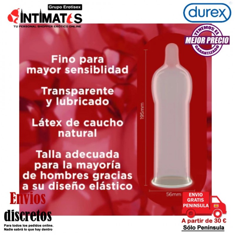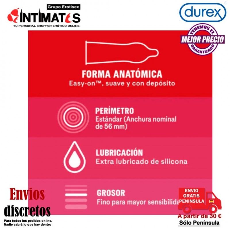 Preservativos transparentes con forma Easy-On que facilitan su colocación, con forma anatómica que asegura la sujeción.