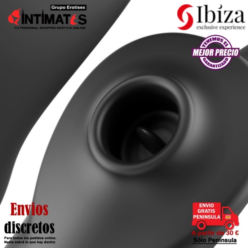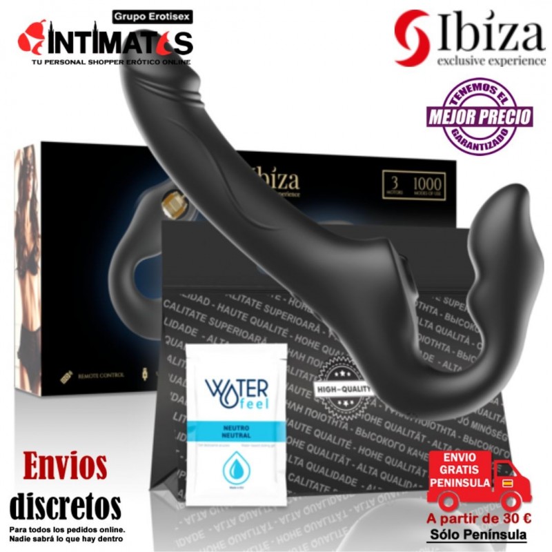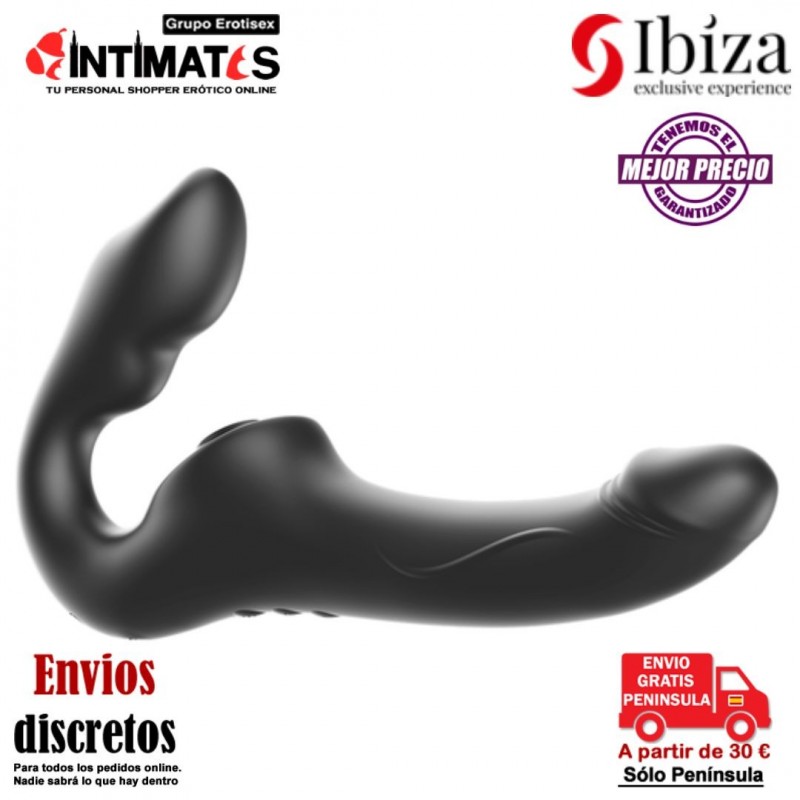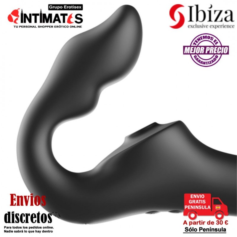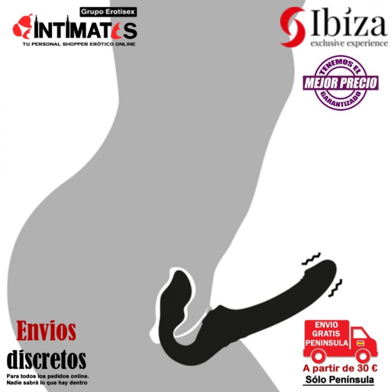 El arnés vibrador Ibiza de silicona control remoto con succionador clitorial, te prepara para el puro placer durante el acto sexual.