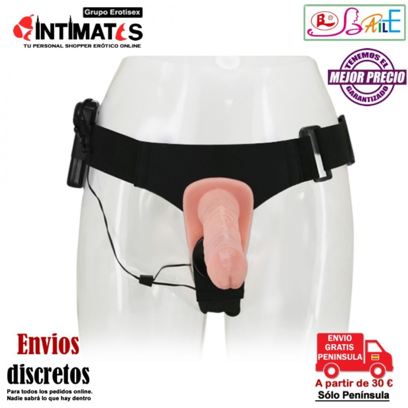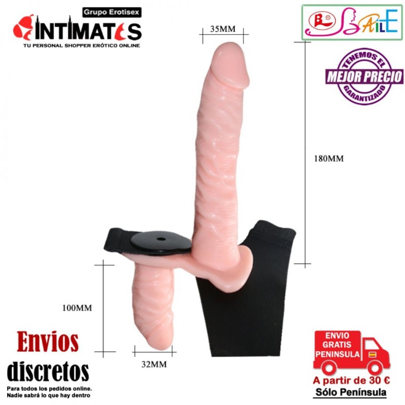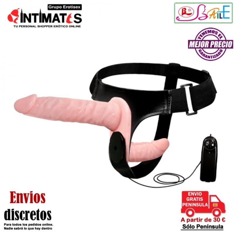 Hecho para satisfacer tanto a tu pareja como a ti misma ya que cuenta con consolador vibrador y otro más pequeño colocado en el panel interior vaginal, para una diversión doble.
