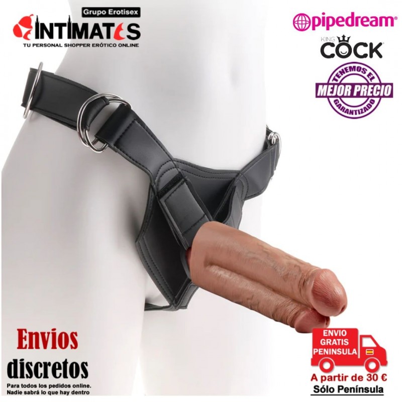 Cuando desees que tu experiencia con el arnés cumpla sus fantasías, este arnés con doble pene de King Cock satisfacerá tus sueños de doble penetración con un consolador grueso esculpido a partir de dos penes realistas.