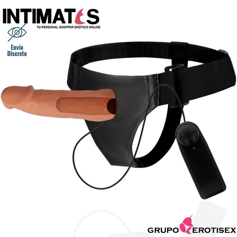 Fantástico arnés con pene hueco para hombre en color natural.