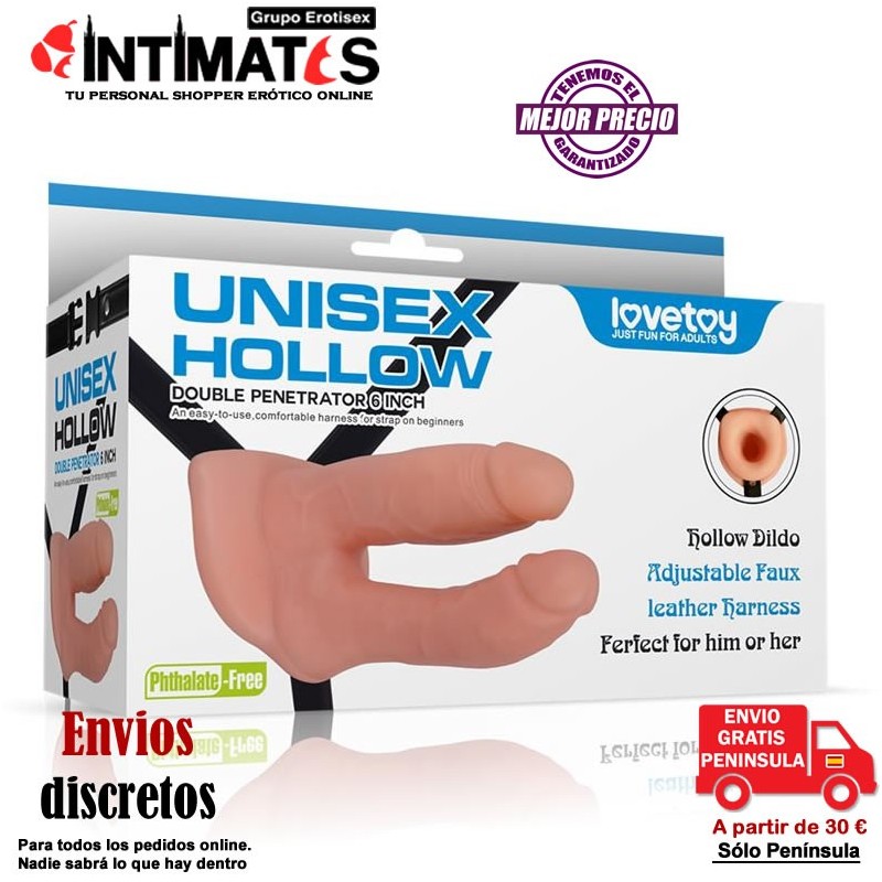 Unisex Hollow · Arnés doble con consolador hueco · Lovetoy
