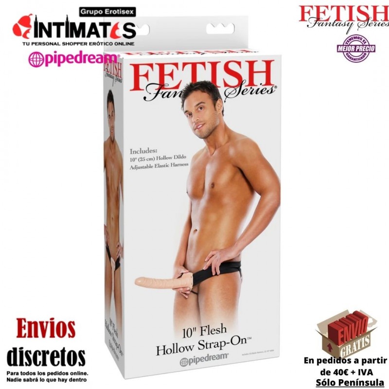 10" Flesh Hollow Strap · Arnés con pene hueco de 254mm · Fetish Fantasy Series