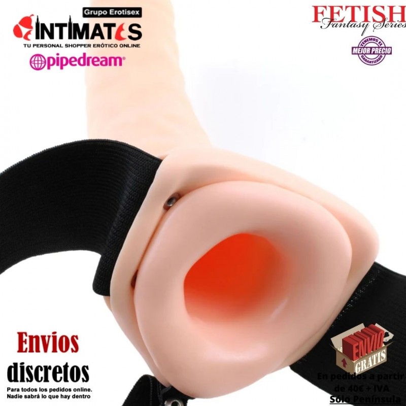 8" Vibrating Hollow Strap-On · Arnés con pene hueco 205mm · Fetish Fantasy Series