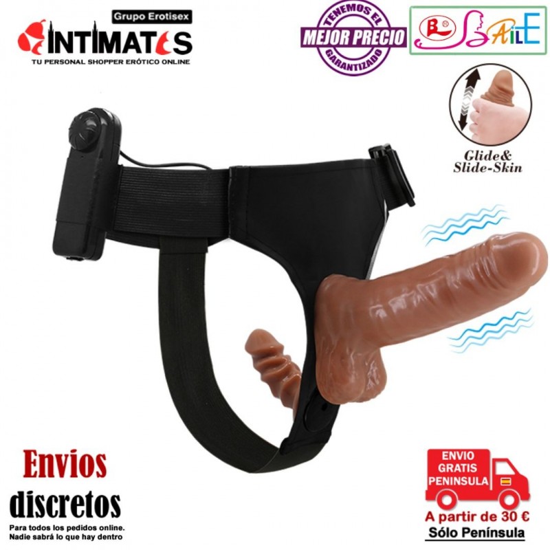 Viene completo con consolador con correa, arnés con correa elástica gruesa cómoda y ajustable, un vibrador potente pero silencioso, controles de varias velocidades y una muestra de lubricante.