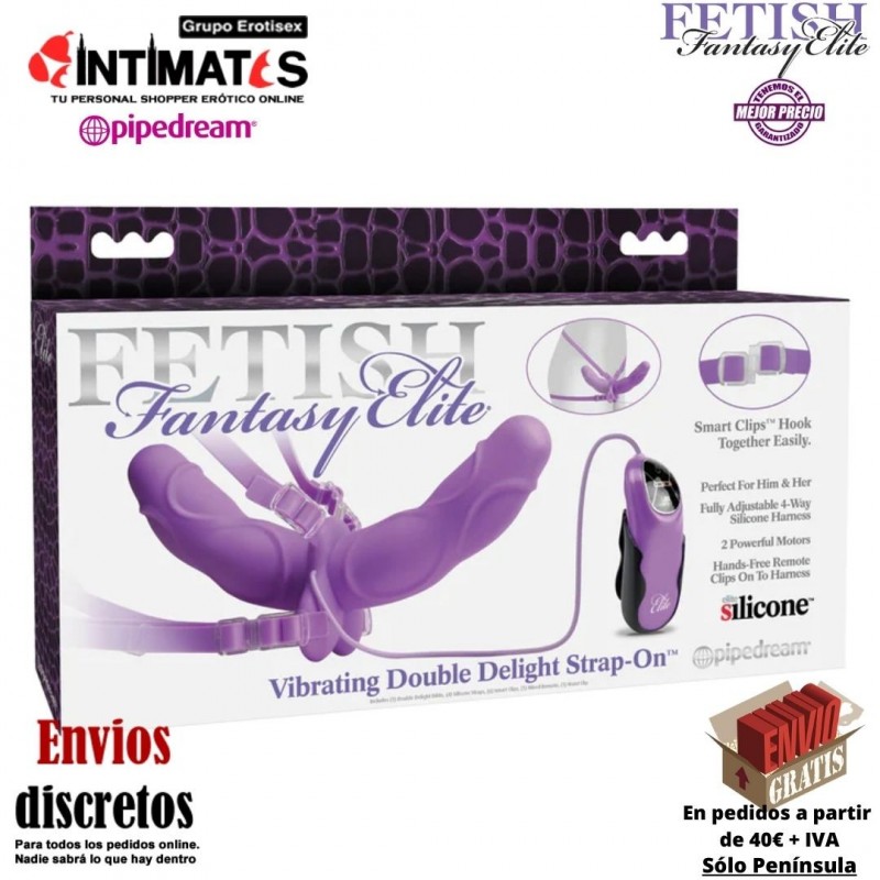 Vibrating Double Delight Strap-On · Arnés doble penetración · Fetish Fantasy Elite