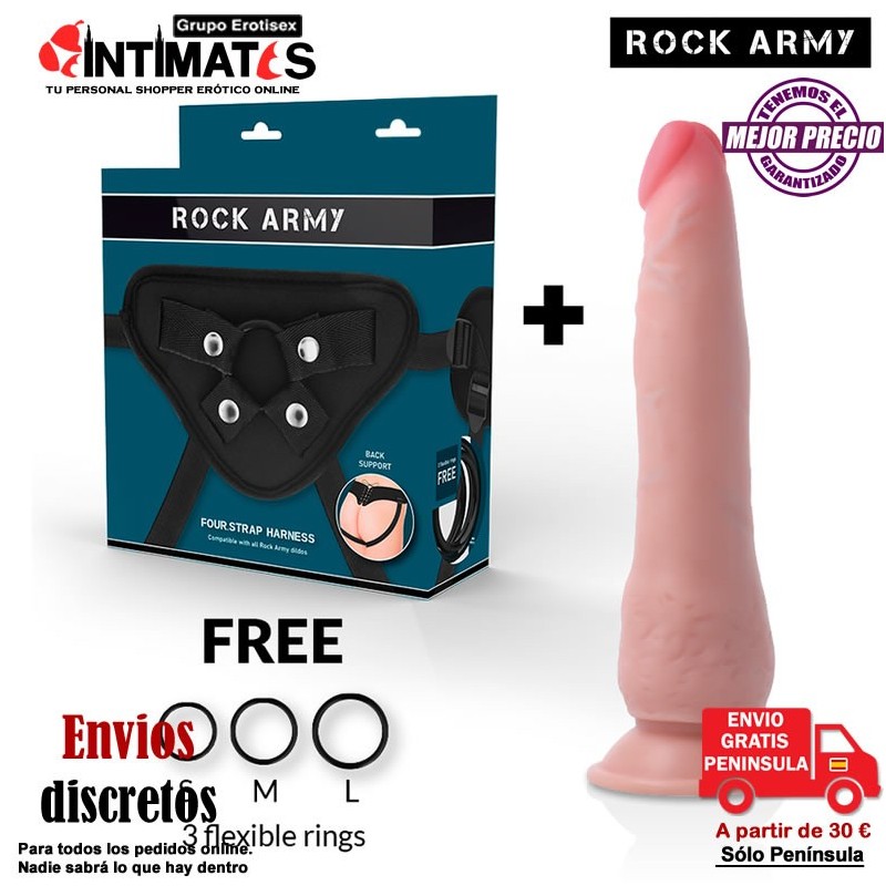 Four Strap el arnés compatible con toda la gama de consoladores de Rock Army.