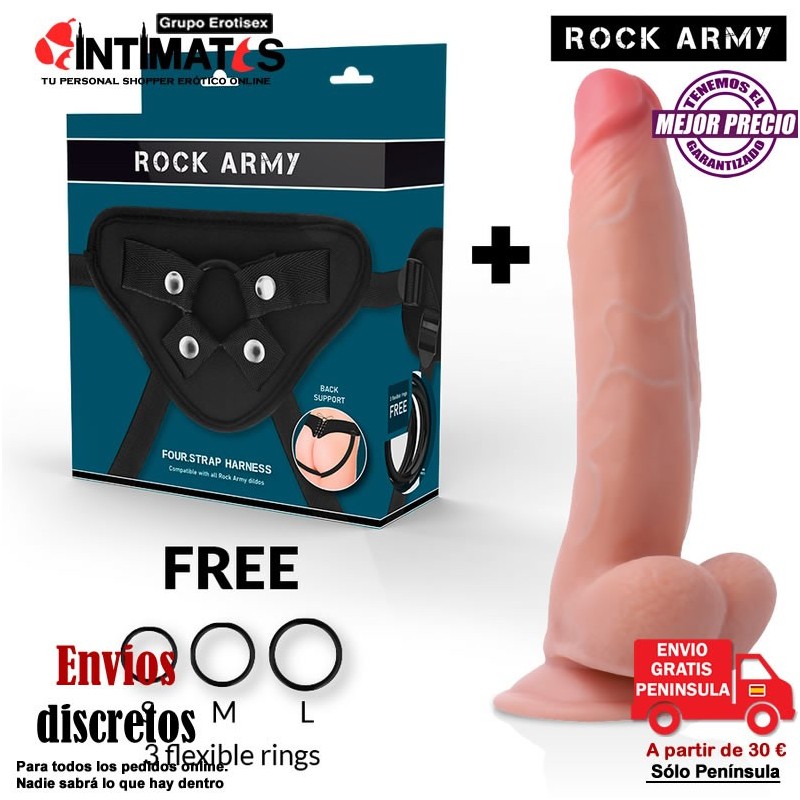 Four Strap el arnés compatible con toda la gama de consoladores de Rock Army.