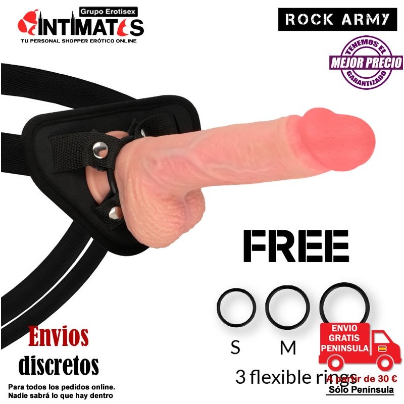 Four Strap el arnés compatible con toda la gama de consoladores de Rock Army.
