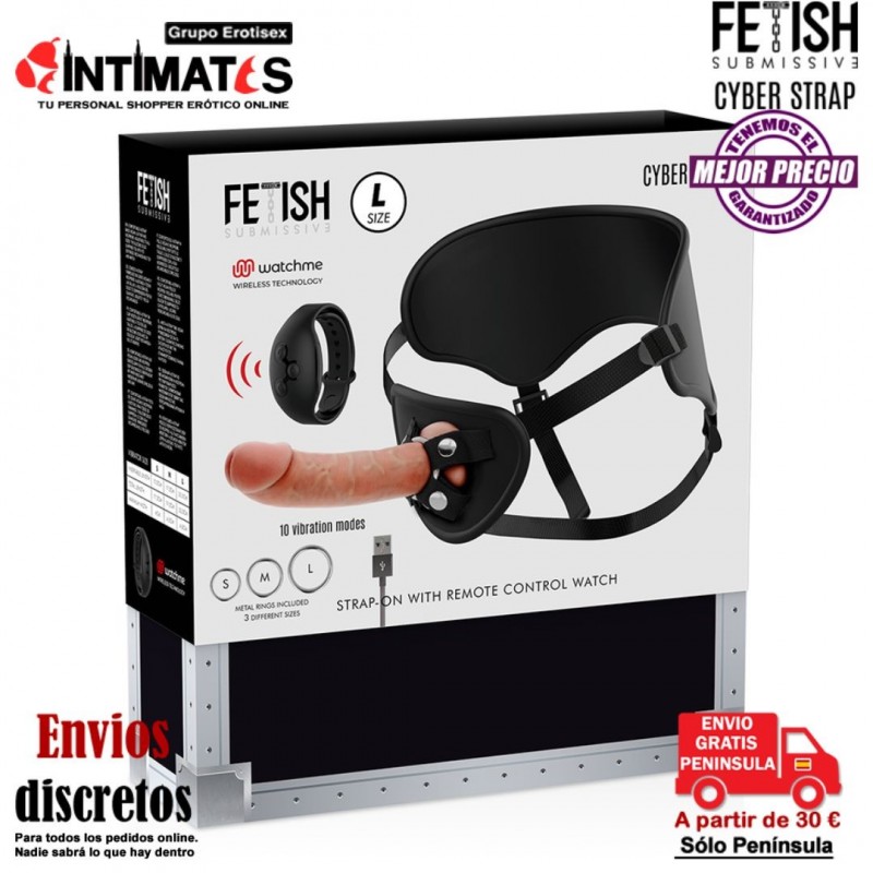 Arnés con consolador 225 mm y control remoto Watchme · Cyber Strap