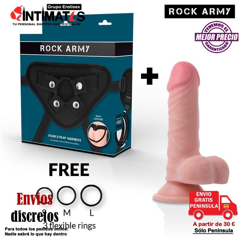 Four Strap el arnés compatible con toda la gama de consoladores de Rock Army.