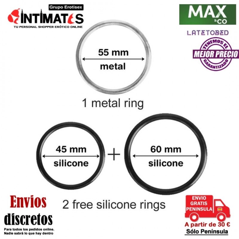 Para que tu experiencia con Alex sea aún mejor cuenta con 3 anillos, uno de metal y dos de silicona, perfectos para que puedas disfrutarlo con consoladores de varios tamaños.