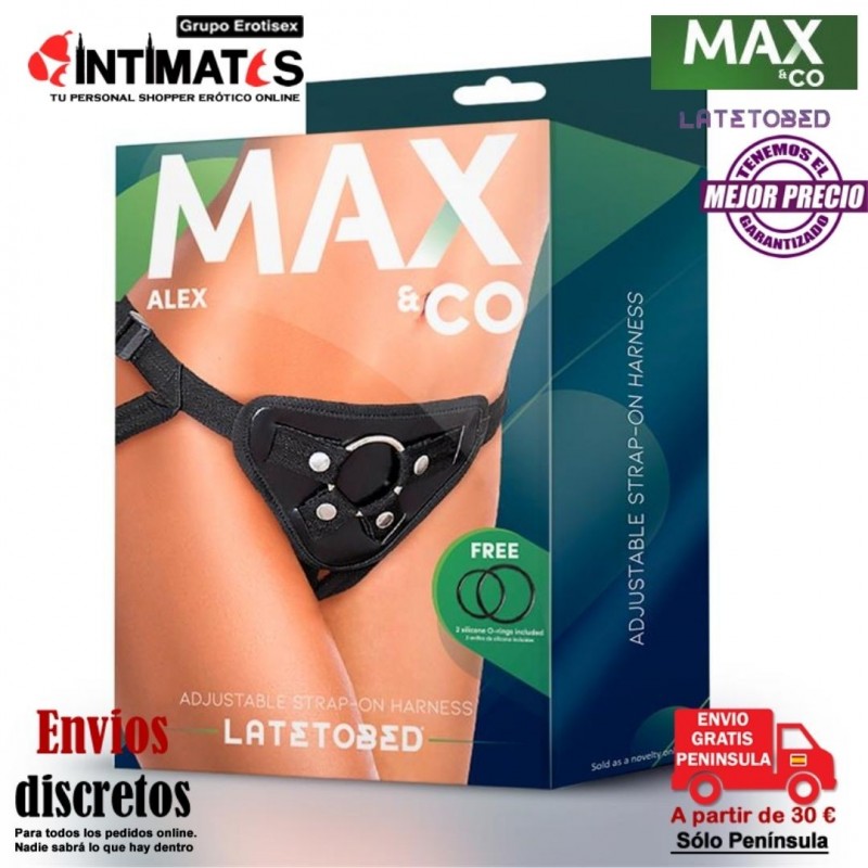 Alex es un arnés universal ajustable perfecto para utilizar con la mayoría de consoladores del mercado, con unos materiales fuertes y resistentes, pero al mismo tiempo elásticos y muy cómodos, perfecto para llevar durante toda una noche…