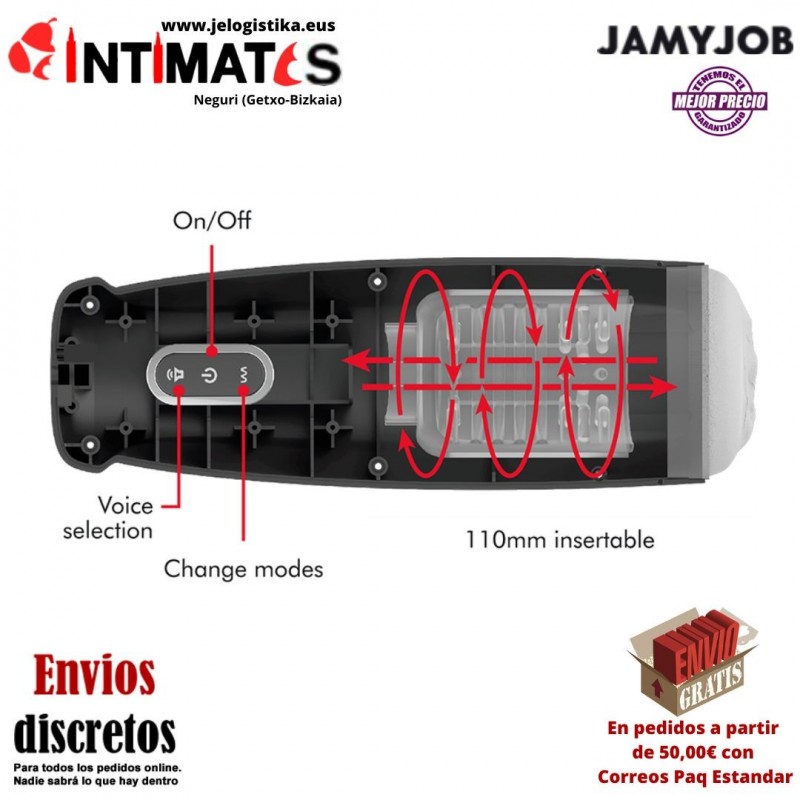 Tornado de Jamyjob es masturbador de alta tecnología impactante, todo un nivel 5 que comprobarás en el momento que te deslices por su suave manga, no olvides aplicar una generosa cantidad de lubricante a base agua y escojas entre sus diez potentes patrones de batida y rotación, haciéndote experimentar todo un torbellino de sensaciones.