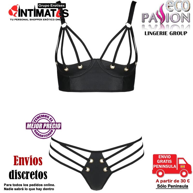 Las numerosas correas en el sujetador abierto y el tanga hacen que el conjunto Malwia sea una propuesta muy tentadora de la marca Passion.