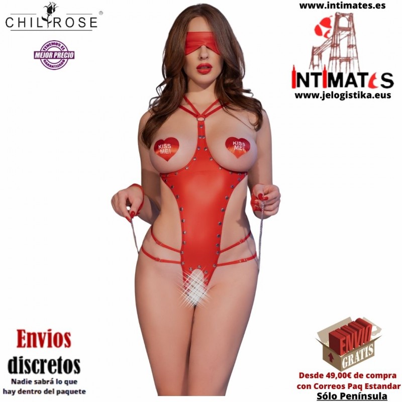 Despierta tus sentidos con este atrevido body abierto en rojo intenso. Sus seductores tirantes envuelven tus curvas, realzando tu confianza femenina.
