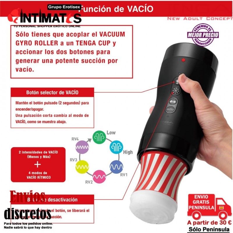 Tenga Vacuum Gyro Roller es un accesorio muy especial que se combina con un Rolling Tenga Cup aportando movimientos de rotación y succión al masturbador manual.