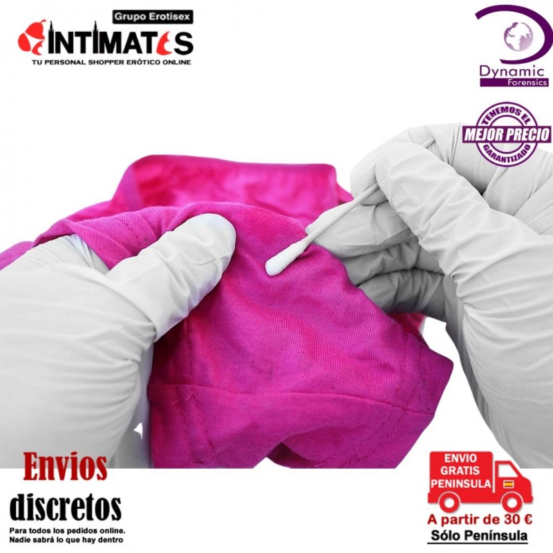 Es un sistema revolucionario y fácil de usar, este test le permite detectar semen en prendas, tejidos o superficies que pudieran tener restos.