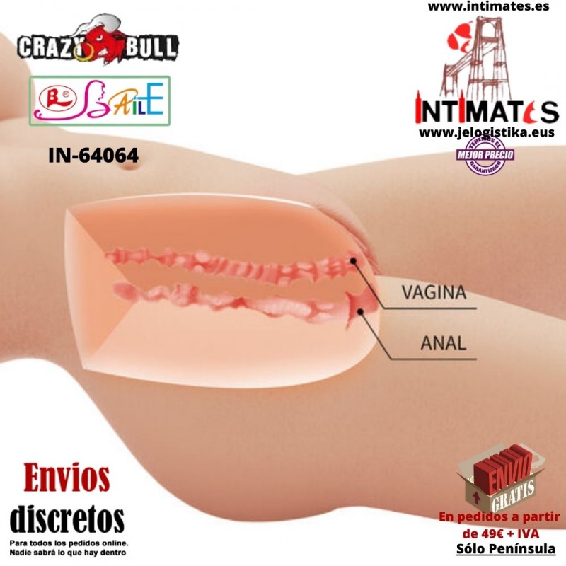 Sus dos orificios independientes (vaginal y anal) han sido diseñados anatómicamente para proporcionar una estimulación intensa y realista, con una sensación fisiológica auténtica que imita fielmente la intimidad femenina.
