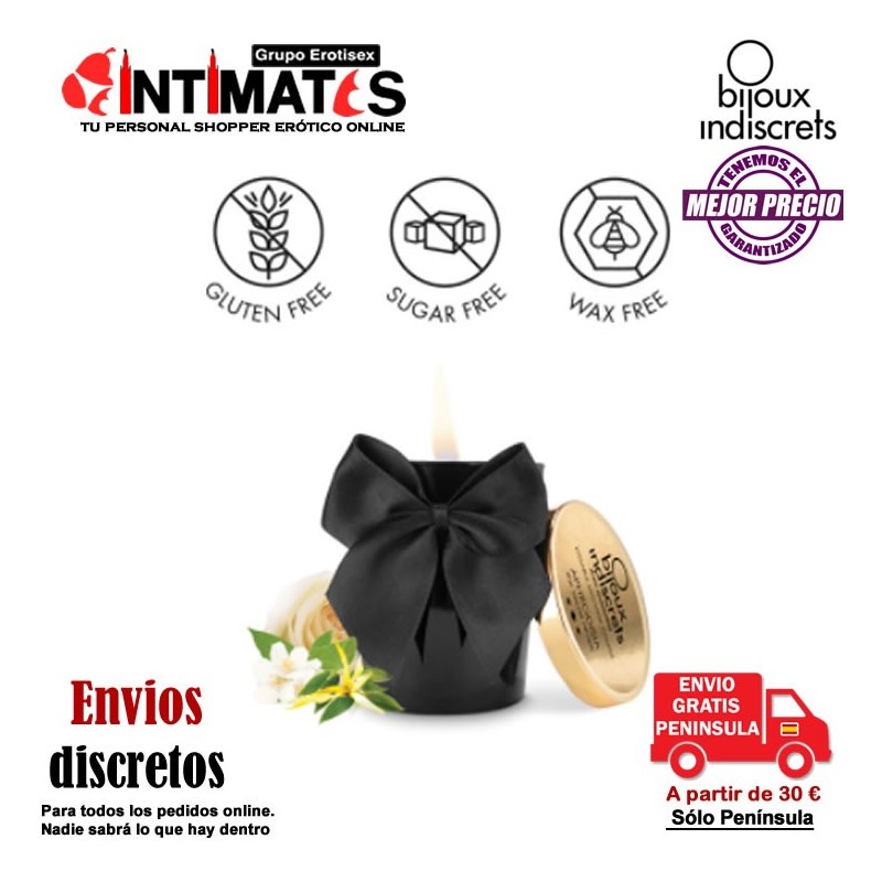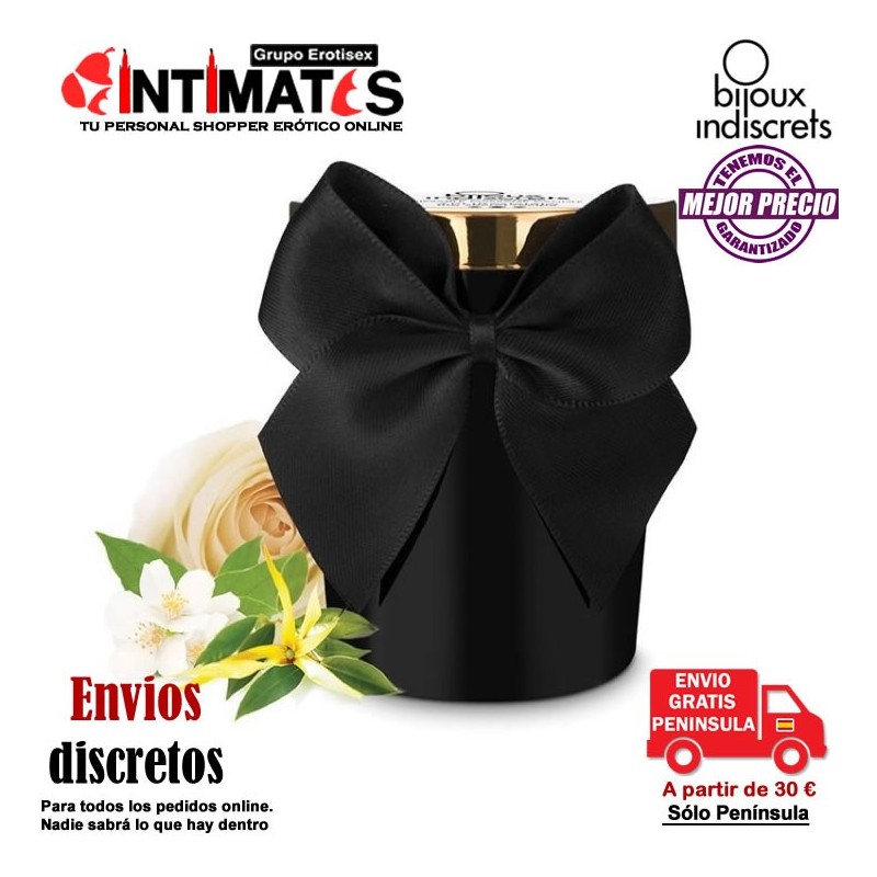 Del calor de su suave resplandor surge la esencia de Bijoux Indiscrets, una fragancia inspirada en el Kama Sutra que combina rosa, ylang-ylang, jazmín y especias orientales.