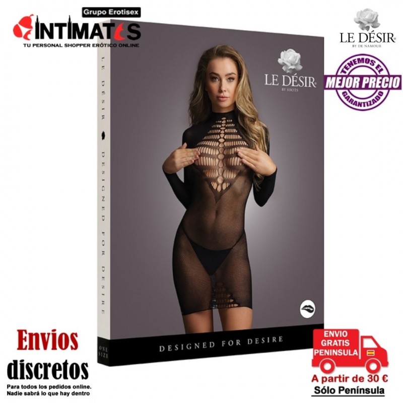 Long sleeve fishnet dress · Vestido de rejilla con escote sensual - O/S · Le Désir