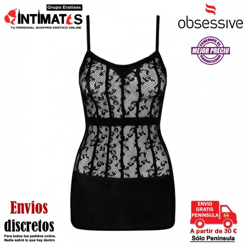 Vestido en red fina semitransparante corto en color negro con un exclusivo diseño.